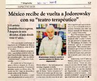 México recibe de vuelta a Jodorowsky con su "teatro terapéutico" [artículo] La Segunda (Diario : Santiago, Chile)-- abril 10, 2008, p. 57. .