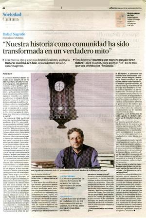 "Nuestra historia como comunidad ha sido transformada en un verdadero mito" [entrevista] / [artículo] : Pablo Marín. La Tercera (Diario : Santiago, Chile)-- sep. 19, 2014, p. 42. .