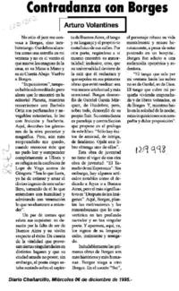 Contradanza con Borges [artículo] / Arturo Volantines. Chañarcillo. -- dic. 6, 1995, p. 3. .