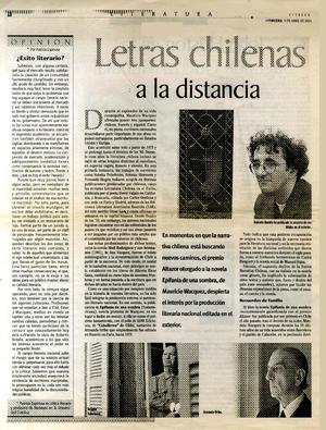 Letras chilenas a la distancia [artículo] / Iván Quezada E. La Tercera (Diario : Santiago, Chile)-- abr. 5, 2001, p. 18-19. retr. .