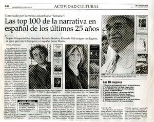 Las top 100 de la narrativa en español de los últimos 25 años [artículo] / Carolina Andonie Dracos. El Mercurio (Diario : Santiago, Chile)-- mar. 27, 2007, p. A8. .