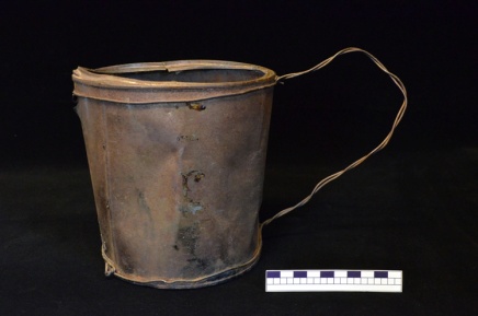 Choca confeccionada con envase de lata y alambre. Donación Ilustre Municipalidad de Coyhaique. N° de inventario 106.