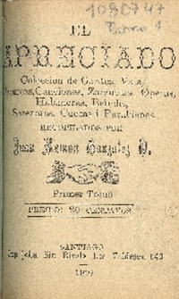 El Apreciado : colección de cantos, vals, mazurcas, canciones, zarzuelas, operas, habaneras, brindis, serenatas, cuecas i parabienes : primer tomo recopilados por Juan Ramón González O.