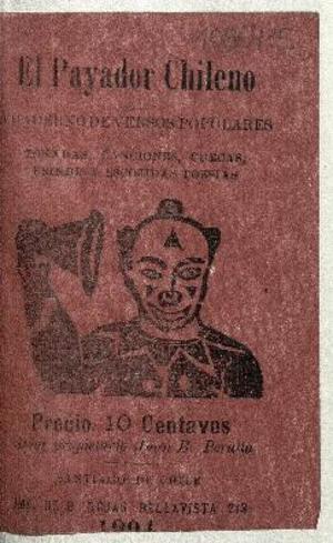 El payador chileno : cuaderno de versos populares : tonadas, canciones, cuecas, brindis y escogidas poesías / autor propietario Juan B. Peralta. Santiago de Chile : Imp. de B. Rojas, [1904?] 32 páginas ; 13 cm. .