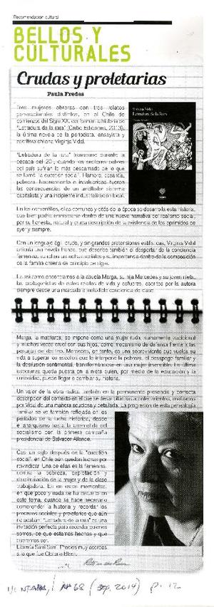 Crudas y proletarias [artículo] / Paula Fredes Ventanal (Revista : Santiago, Chile)-- n°68 (Septiembre) 2014, p. 12 .