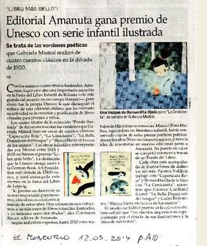 Editorial Amanuta gana premio de Unesco con serie infantil ilustrada [artículo] / I.D. El Mercurio (Diario : Santiago, Chile)-- mar. 12, 2014, p. A10 .