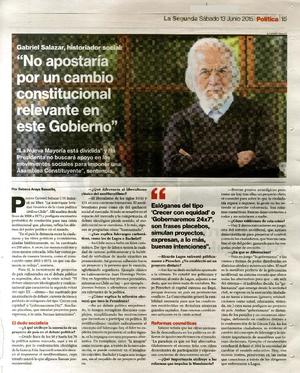 "No apostaría por un cambio constitucional relevante en este gobierno" [entrevistas] [artículo] / Rebeca Araya Basualto. La Segunda (Diario : Santiago, Chile)-- jun. 13, 2015, p. 15. .