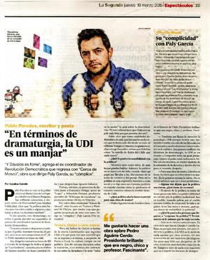 "En términos de dramaturgia, la UDI es un manjar" [artículo] / Catalina Cabello La Segunda (Diario : Santiago, Chile) marzo 19, 2015, p. 25 .