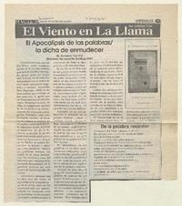 El Apocalipsis de las palabras la dicha de enmudecer / [artículo] : Cristian Cruz. El Valle de Aconcagua (Diario : San Fernando, Chile)-- oct. 16, 2003, p. 15. il. .