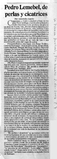 Pedro Lemebel, de perlas y cicatrices [artículo] / Aristóteles España. La Prensa Austral (Punta Arenas, Chile)-- jul. 2, 2004, p. 7. .
