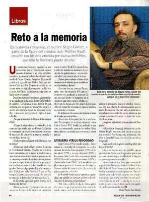 Reto a la memoria (entrevistas) [artículo]/ Delia Pizarro San Martín. Ercilla (Revista: Chile) no. 3.275 (ago. 29, 2005) p. 62 .
