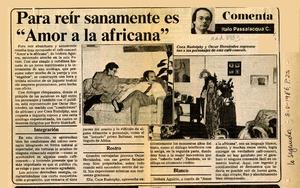 Para reir sanamente es "Amor a la africana" [artículo] / Italo Passalacqua C. La Segunda (Diario : Santiago, Chile) mayo 8, 1986, página 25 .
