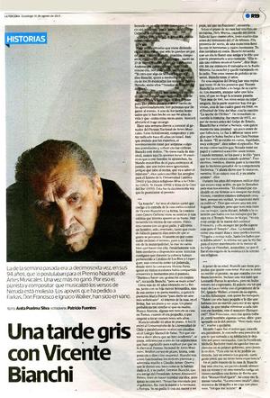 Una tarde gris con Vicente Bianchi [artículo] / Anita Puelma Silva La Tercera (Diario : Santiago, Chile)-- ago. 31, 2014, p. 19 (Reportajes) .