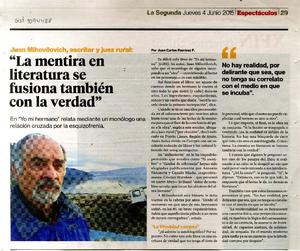 "La mentira en literatura se fusiona también con la verdad" [artículo] / Juan Carlos Ramírez F. La Segunda (Diario : Santiago, Chile)-- jun. 4, 2015, p. 29. .