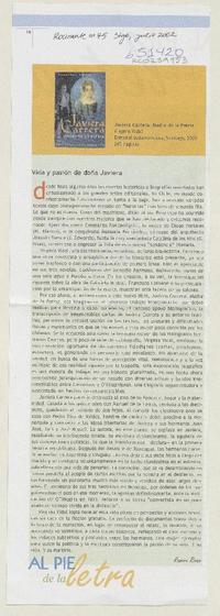 Vida y pasión de doña Javiera [artículo] Ramiro Rivas