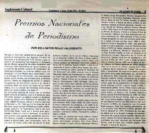Premios Nacionales de periodismos [artículo] Wellington Rojas Valdebenito.