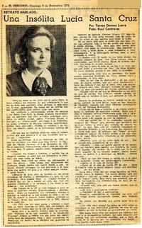 Una insólita Lucía Santa Cruz: [entrevista] [artículo] / Teresa Donoso Loero. El Mercurio (Santiago, Chile)-- nov. 9, 1975, p. 2. retr. .