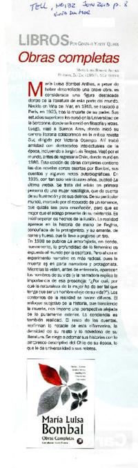 Obras Completas [artículo] / Gonzalo Yuseff Quirós Tell (Revista : Chile)-- n° 132 ( Junio 2013), p. 8 .