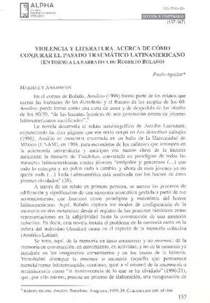 Violencia y literatura [artículo] / Paula Aguilar. Alpha (revista : Osorno, Chile)-- no. 30 (jul. 2010) p. 157-167. .