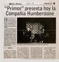 "Primos" presenta hoy la Compañia Humberstone [artículo]