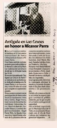 Antigala en Las Cruces en honor a Nicanor Parra [artículo]