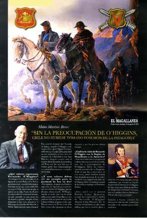 "Sin la preocupación de O'Higgins, Chile no hubiese tomado posesión de la patagonia" [entrevista] [artículo] El Magallanes (Diario : Punta Arenas, Chile)-- agosto 23, 2015. .