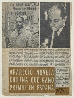 Apareció novela chilena que ganó premio en España. [artículo] El Mercurio (Diario : Santiago, Chile)-- feb. 6, 1968. .