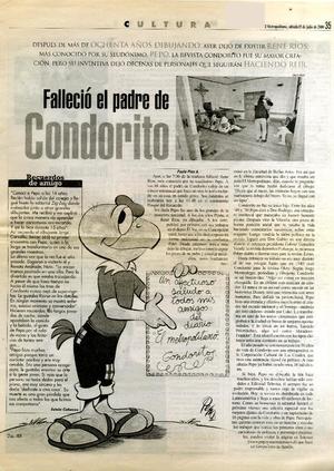 Falleció el padre de Condorito [artículo] / Paola Pino A. El Metropolitano (Diario : Santiago, Chile) julio 15, 2000, página 35 .