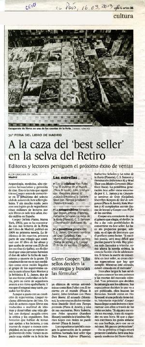 A la caza del 'best seller' en la selva del Retiro [artículo] / Flor Gracera de León El País (Diario : Madrid, España)-- mar. 16, 2013, p. 31 .