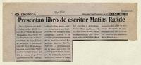 Presentan libro de escritor Matías Rafide [artículo]