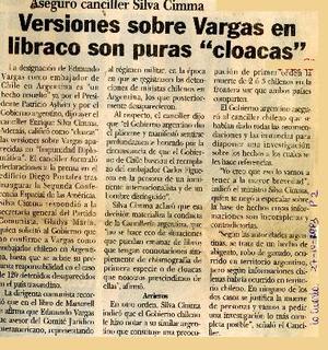 Versiones sobre Vargas en libraco son puras "cloacas". [artículo] La Cuarta (Diario : Santiago, Chile)-- abr. 27, 1993, p. 2. .