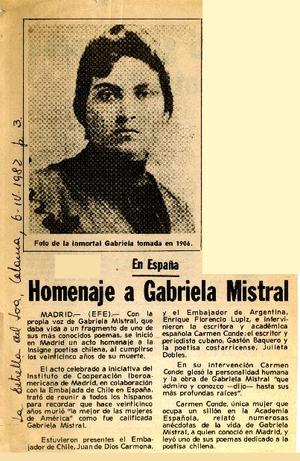 Homenaje a Gabriela Mistral [artículo]