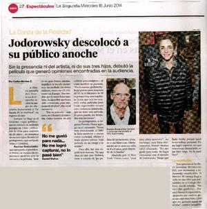 Jodorowsky descolocó a su público anoche [artículo] / Carlos Montes Z. La Segunda (Diario : Santiago, Chile)-- jun. 18, 2014, p. 22 .