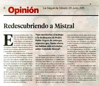 Redescubriendo a Mistral. [artículo] La Segunda (Diario : Santiago, Chile)-- jun. 20, 2015, p. 8. .