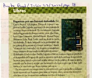 Fragmentos para una literatura desbordada [artículo]. Punto Final (Revista : Santiago, Chile)-- no. 714 (jul. 23, 2010) p. 18. .