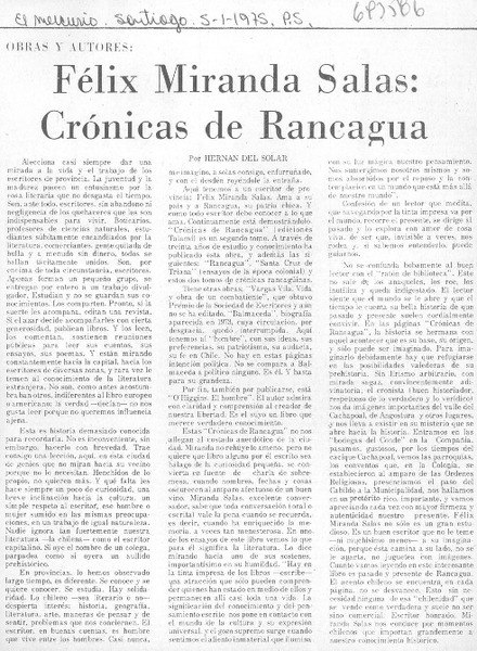 Miranda Salas, Félix - Autores chilenos - Crónicas de Rancagua