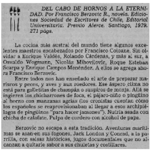 Berzovic R., Francisco - Del Cabo de Hornos a la eternidad - Autores chilenos