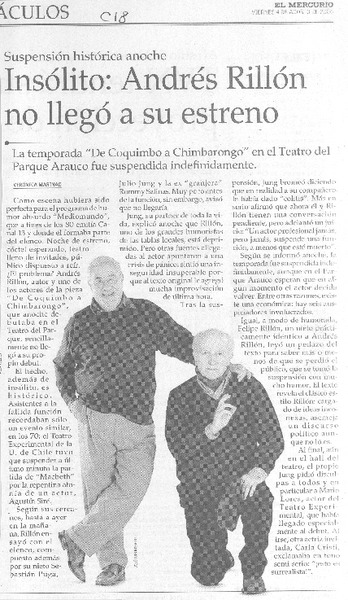 Ahora sí: Andrés Rillón tuvo un cálido estreno [artículo] Verónica Marinao.