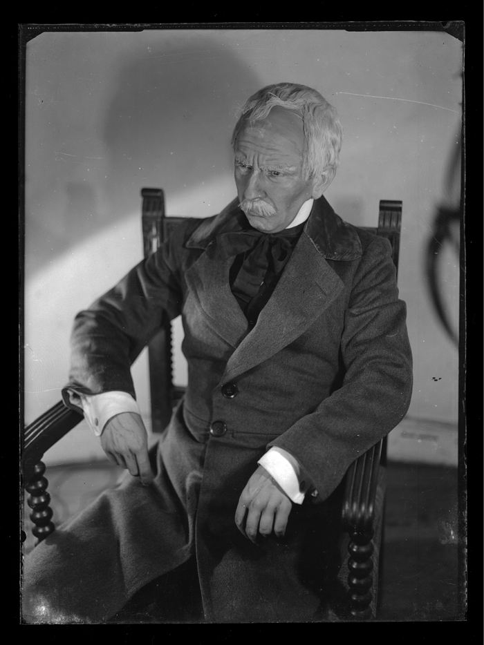[Personificación de un anciano sentado en una silla] [fotografía] Alfredo Molina Lahitte