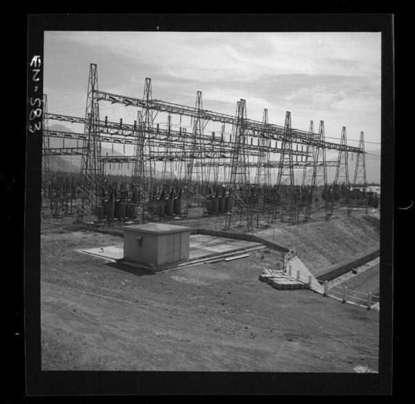 Transformadores en el patio de Alta Tensión, donde la energía generada de 6.900 voltios es elevada a 66.000 voltios [fotografía] Luis Ladrón de Guevara.
