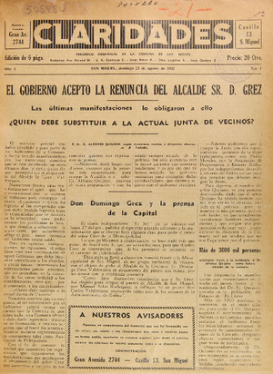 Claridades. San Miguel : [s.n.], 1931 (Santiago : El Esfuerzo) 2 nos. : il. ; 37 cm. .