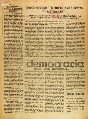 Democracia / [Agrupación Demócrata de Tocopilla] [Tocopilla] : La Agrupación, 1937. 3 nos. ; 38 cm. .