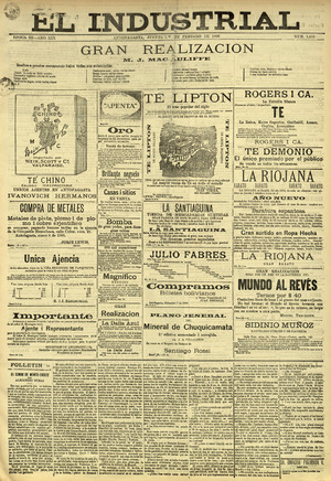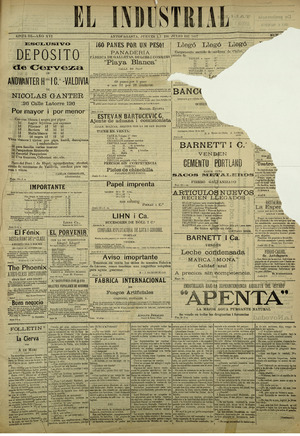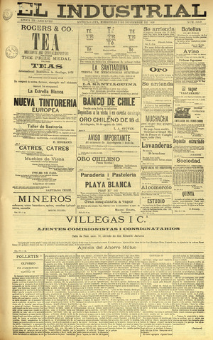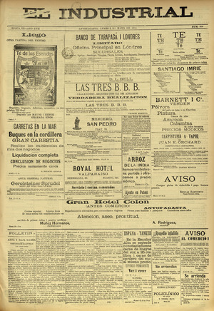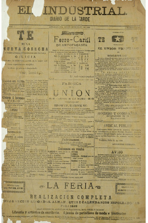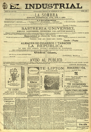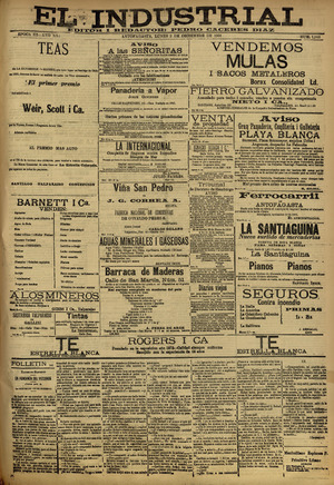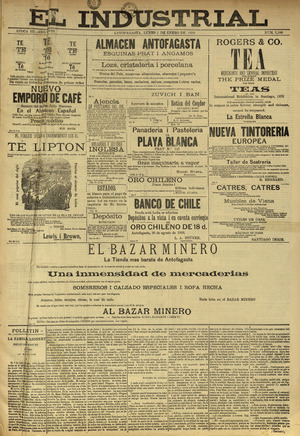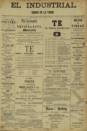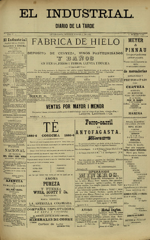 El Industrial. Antofagasta : Impr. de El Industrial, 1881-1938. 58 t. : il., retrs. ; 57 cm. .