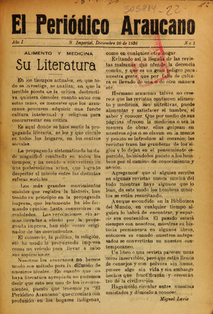 El Periódico Araucano. Nueva Imperial : Impr. La Región, 1936-1937. 9 nos. ; 27 cm. .