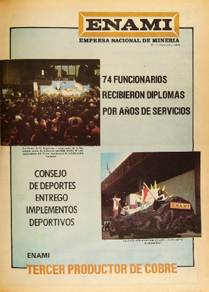 ENAMI / órgano informativo de la Empresa Nacional de Minería. Santiago : Oficina de Relaciones Públicas de la Empresa, 1976-1979 21 nos. : il. (algunas col); 38 cm. .