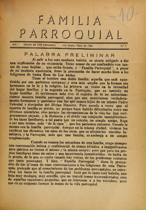Familia parroquial. Los Andes : [s.n.], 1946 (<s.l.> : Impr. San Felipe) 4 nos. ; 28 cm. .