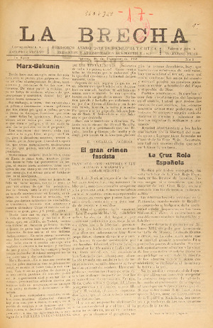 La Brecha. Iquique : Impr. Progreso, 1936-1937. 2 nos. ; 38 cm. .