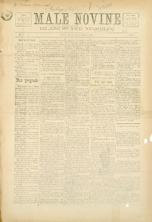 Male Novine. Punta Arenas : [s.n.], 1905-1906 (Punta Arenas : Impr. Universal) 38 nos. ; 49 cm. .