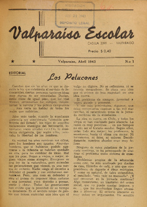 Valparaíso escolar. Valparaíso : [s.n.], 1943 (Valparaíso : Esc. Tip. Salesiana) 3 nos. : l. ; 27 cm. .