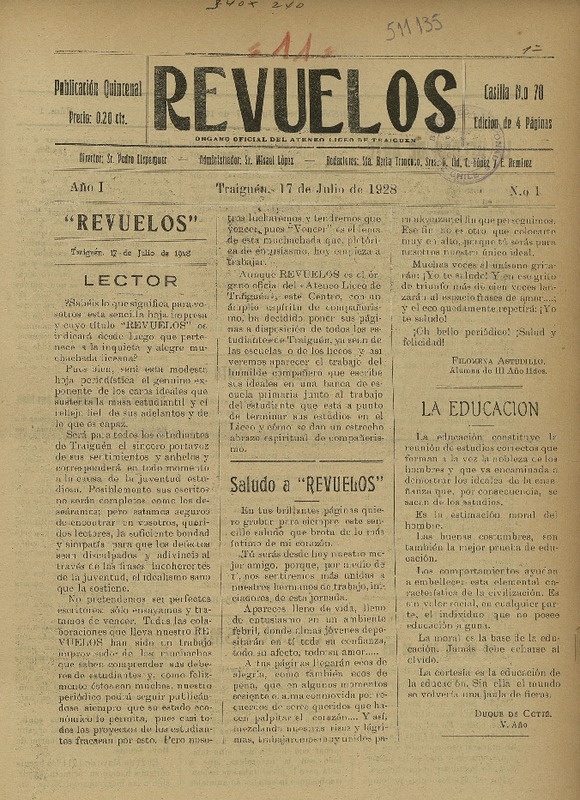 Inicio / Bibliotecas Territoriales / Biblioteca Territorial Comunal / Autores Secundarios / Liceo de Traiguén (Chile)